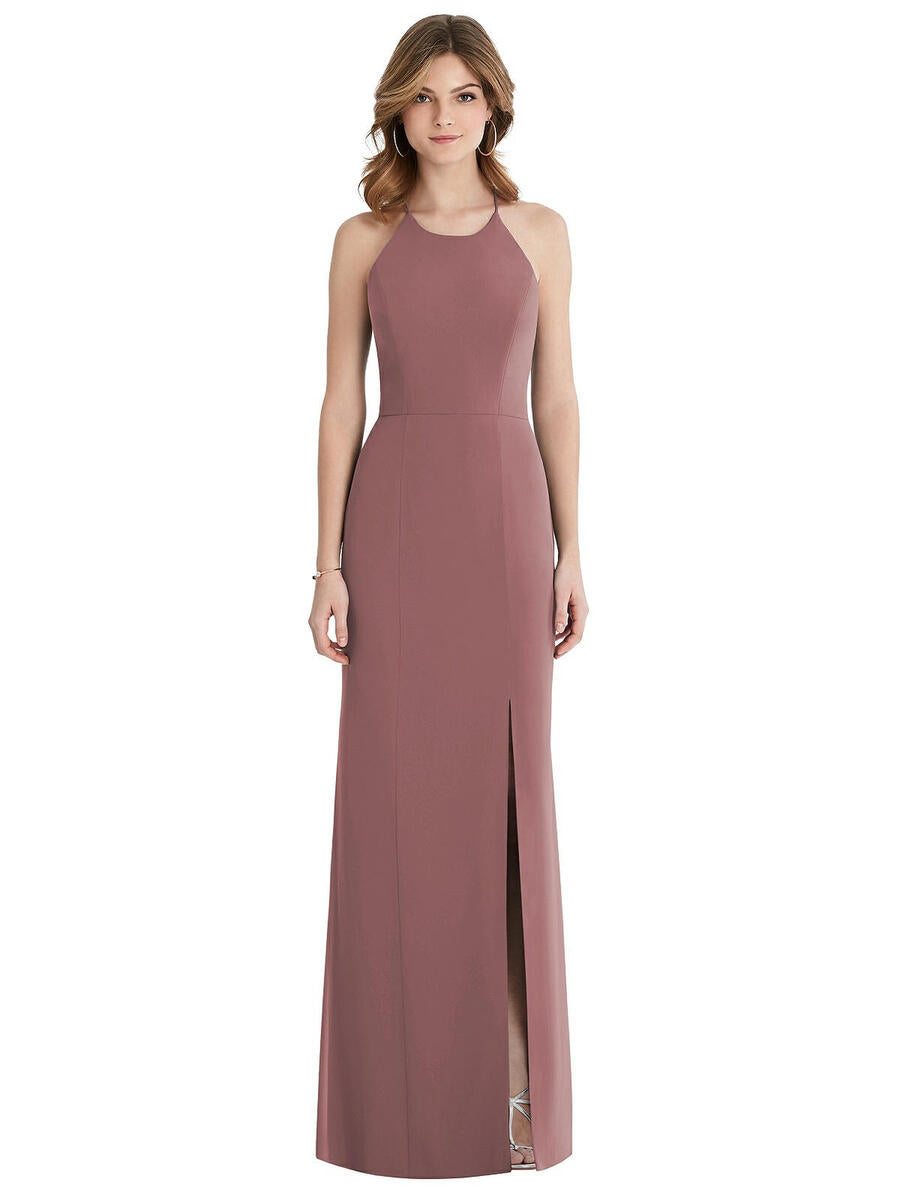 Criss Cross Open-Back Chiffon Trumpet GownFull length sheer crepe halter dress w/ criss cross spaghetti strap detail at open back. Natural waistline w/ trumpet skirt.IMPORTANT INFORMATION REGARDING the "In Stock" indicator on this collectionWhen you see "In Stock" tagged on a style in this collection this indicates that we have this style/color/size in our store for you to see and that you can try it on if you visit our store. The dresses from this collection that are in our store are "Samples" and are not available for purchase.All style/sizes/colors in this collection must be special ordered and can usually be shipped in 9 weeks.