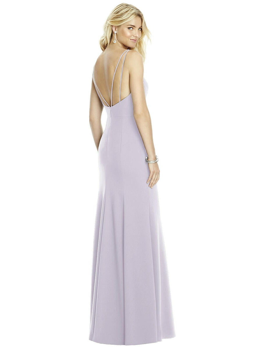Bateau Neck Open-Back Trumpet GownFull length crepe dress has bateau neckline and V- spaghetti strap detail at open back. Trumpet skirt.IMPORTANT INFORMATION REGARDING the "In Stock" indicator on this collectionWhen you see "In Stock" tagged on a style in this collection this indicates that we have this style/color/size in our store for you to see and that you can try it on if you visit our store. The dresses from this collection that are in our store are "Samples" and are not available for purchase.All style/sizes/colors in this collection must be special ordered and can usually be shipped in 9 weeks.