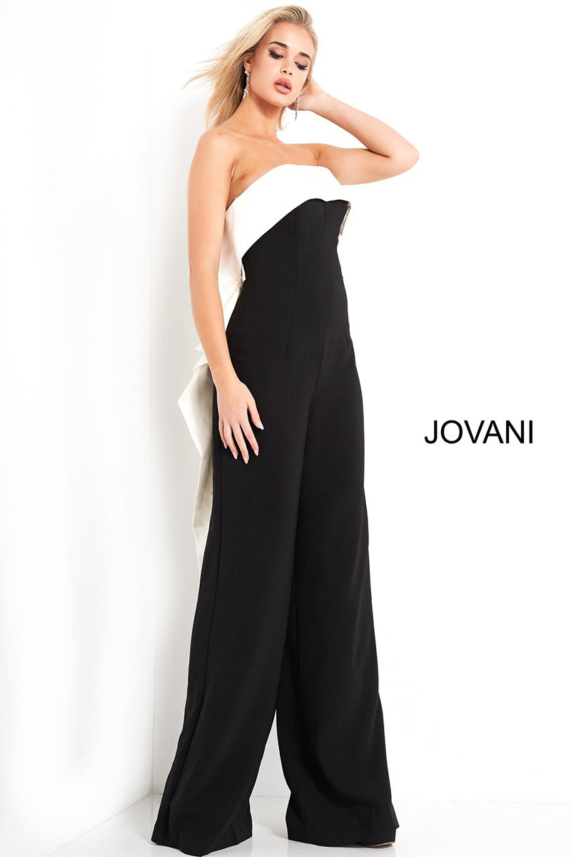 Jovani 04355 Black Ivory Strapless Evening jumpsuit