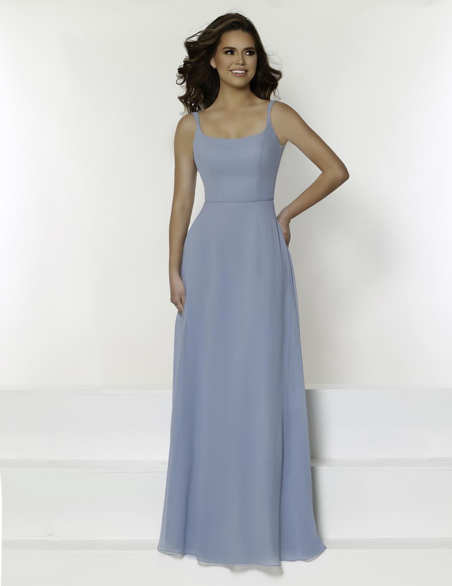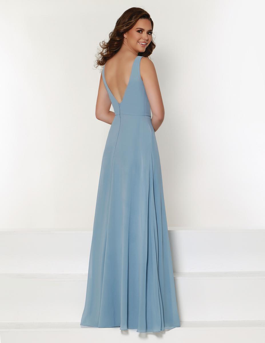The color pictured for this style is Dusty BlueThe fabric in this Kanali K Bridesmaids style is ChiffonAll styles are available in regular and Jr. bridesmaids sizes. If this style is available in two-tone, please select your color choice for the dress from the color pull down menu and advise your color choice for the trim when placing your order.