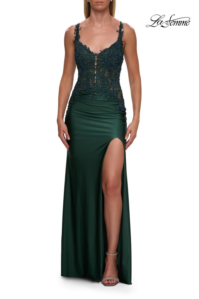 The fabric in this La Femme Prom style is Lace/Jersey