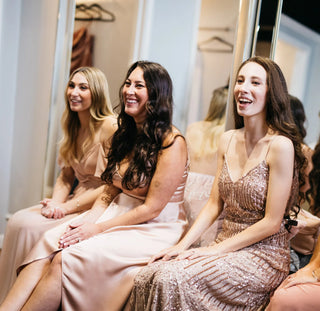 For parties of four to eight bridesmaids, this two-hour-long appointment pairs your group with an expert bridesmaid stylist who navigates our huge inventory to find the look that you have been dreaming about. Your bridal party will have its own private seating area and a private stylist who measures everyone in your party and finds them their perfect dress. All you have to do is sit back and relax.