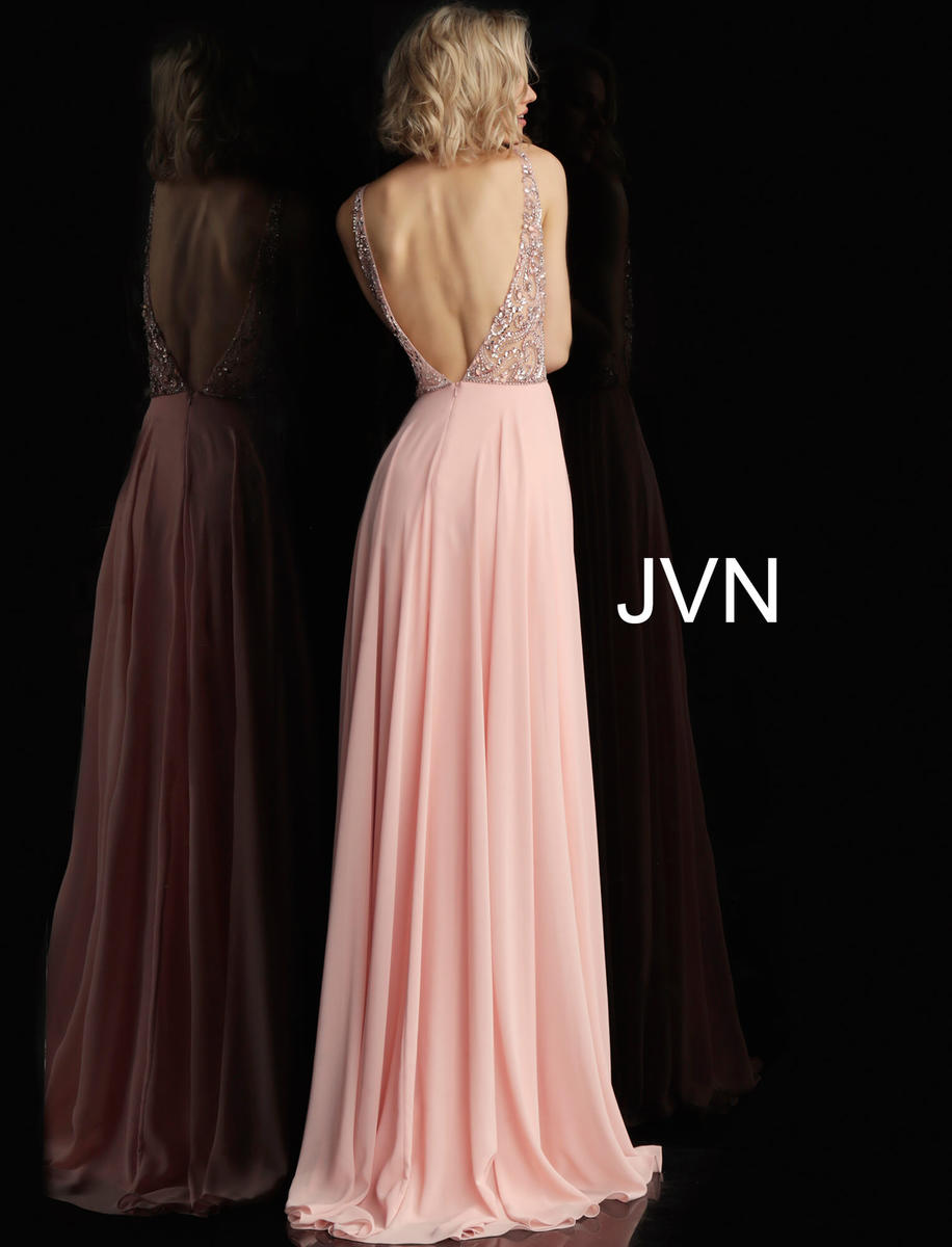 Blush Embellished Bodice Sleeveless Chiffon Prom Dress JVN60467